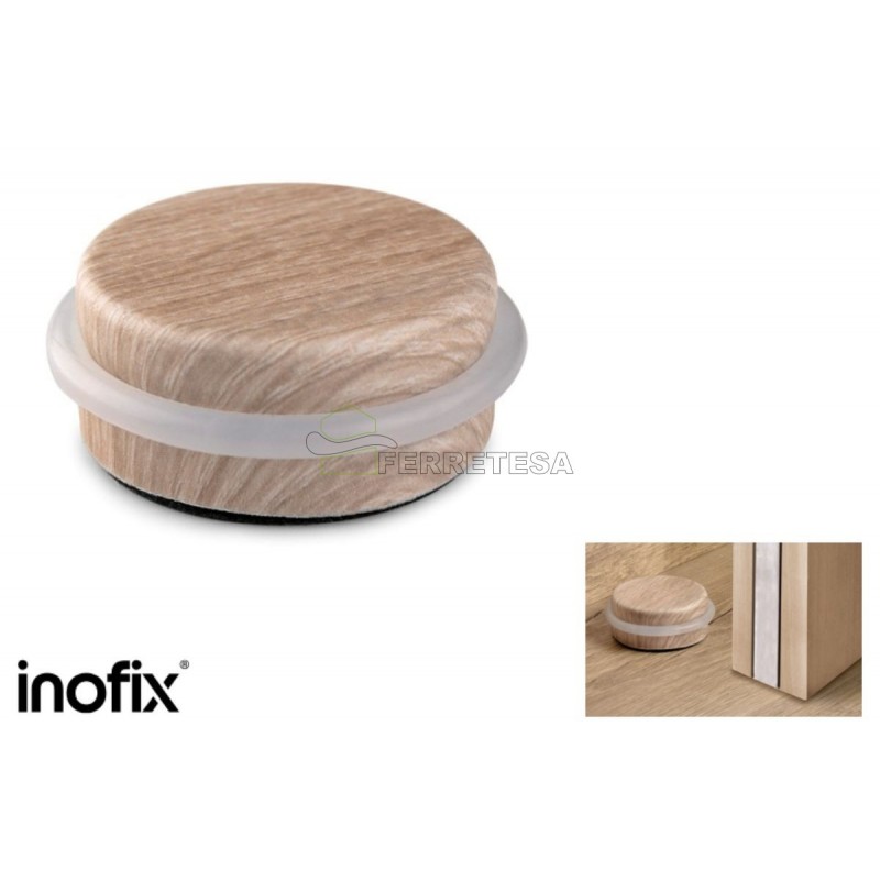 Hemos adaptado el diseño de este modelo ofreciendo nuevos acabados en distintos tonos de madera que se adaptan perfectamente a las nuevas tendencias en suelos laminados de parquet. El producto resultante es un tope metálico muy resistente con tórica de silicona para amortiguar los impactos.