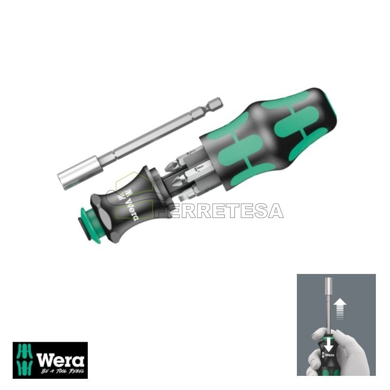 | El destornillador con mango portapuntas Kraftform de Wera está diseñado para ofrecer máximo control, ergonomía y versatilidad en trabajos de atornillado profesional. Su reconocido mango Kraftform, desarrollado según criterios ergonómicos, se adapta perfectamente a la mano, reduciendo la fatiga y mejorando la transmisión del par.